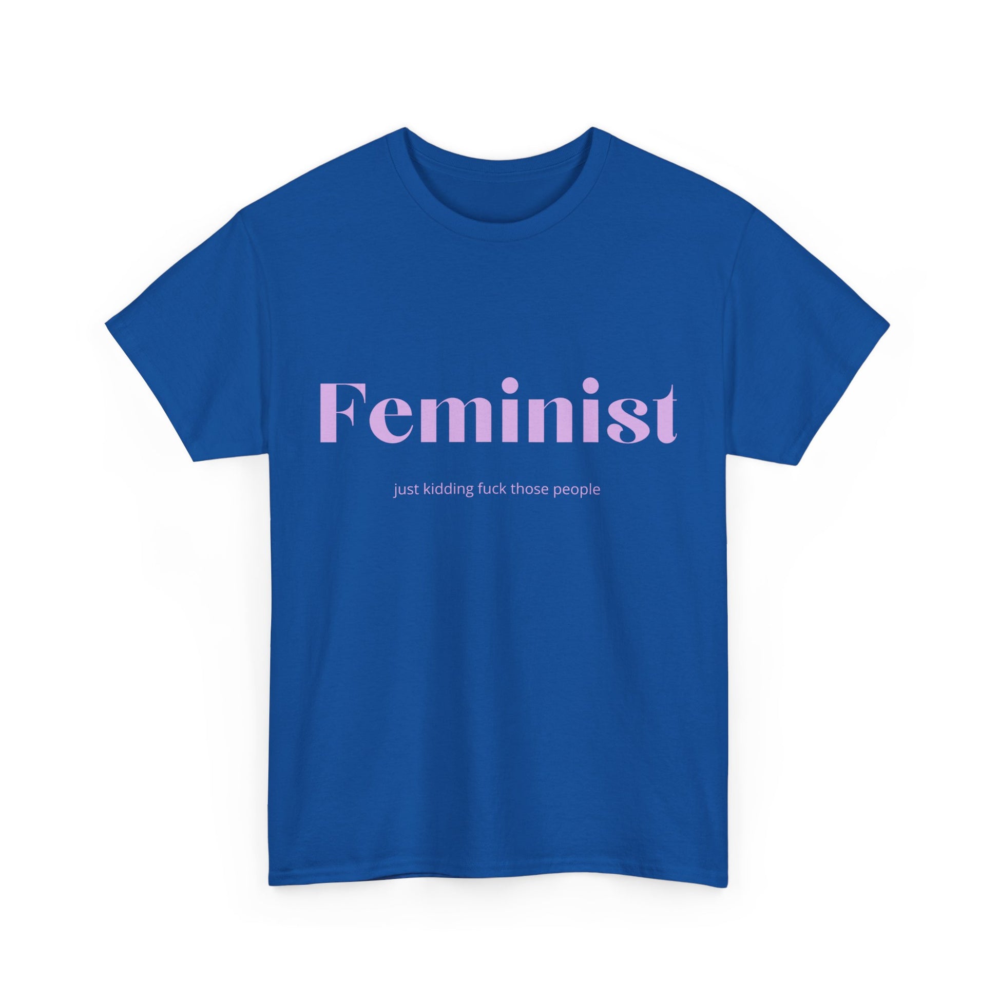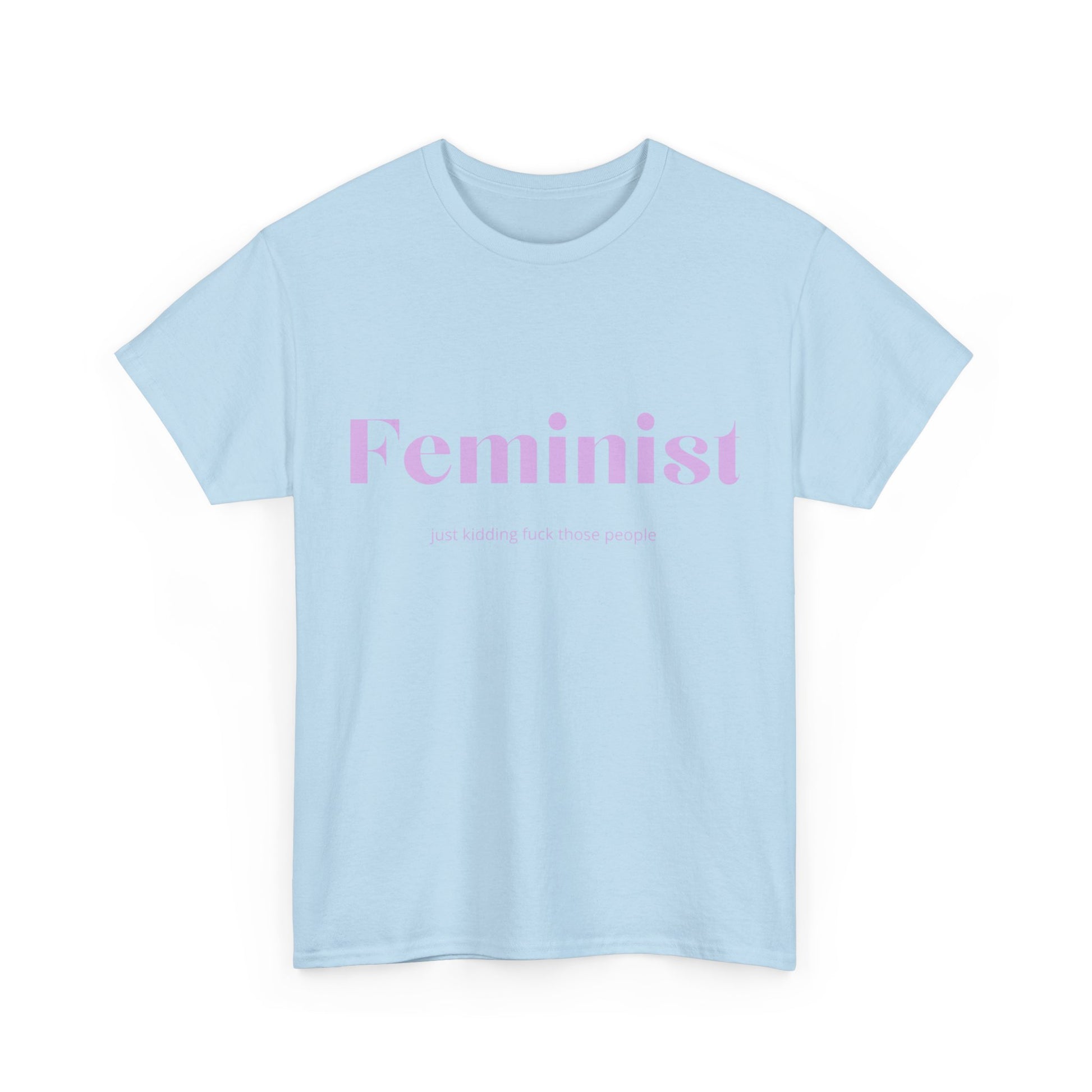Set up the joke before anyone can react with our “Feminist… Just Kidding” T-Shirt. This sarcastic meme tee delivers classic bait-and-switch humor in bold print, perfect for fans of edgy fashion and ironic statement shirts. Designed to get laughs, side-eyes, and maybe a groan or two, this tee is a guaranteed conversation starter.