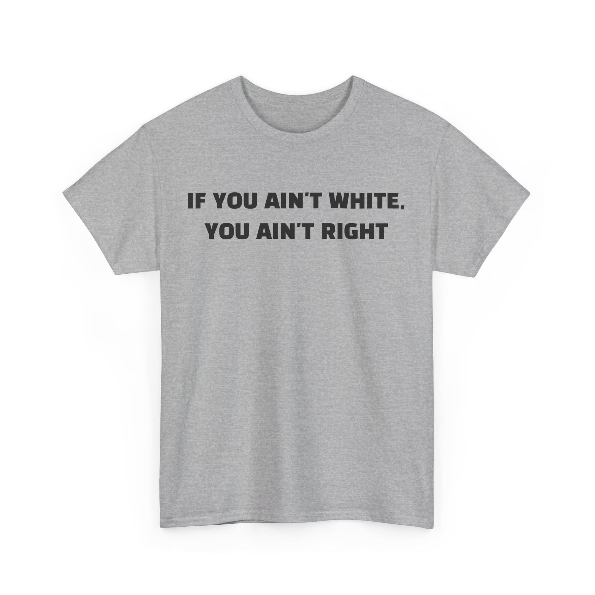 Channel your inner awkwardness with our “If You Ain’t White, You Ain’t Right” T-Shirt, a hilarious parody inspired by the dark humor of Modern Family. This funny, ironic meme tee is perfect for anyone who loves sarcastic quotes, over-the-top sitcom vibes, and making people laugh.