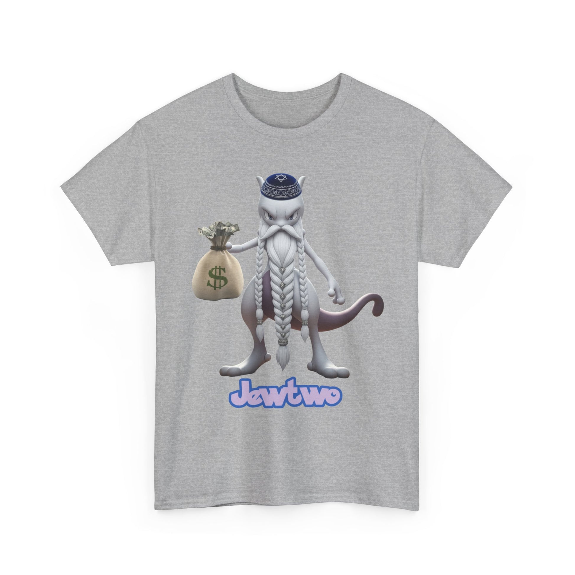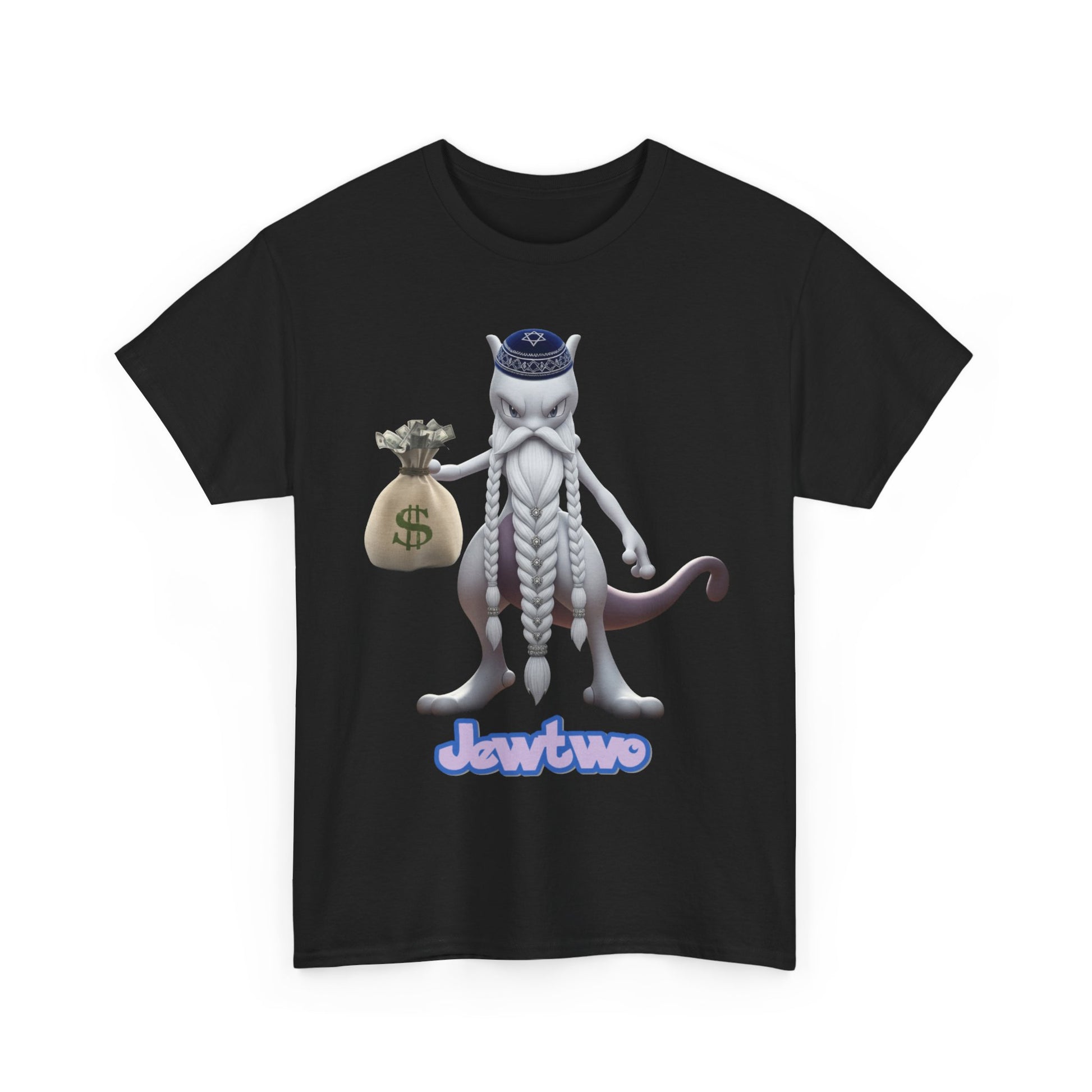 Turn a legendary character into pure absurdity with our Jewtwo with Beard & Hat Holding Cash T-Shirt. This hilarious parody design gives Jewtwo a makeover with a scruffy beard, ridiculous hat, and a stack of cash – the perfect mashup of meme humor and nostalgic parody.