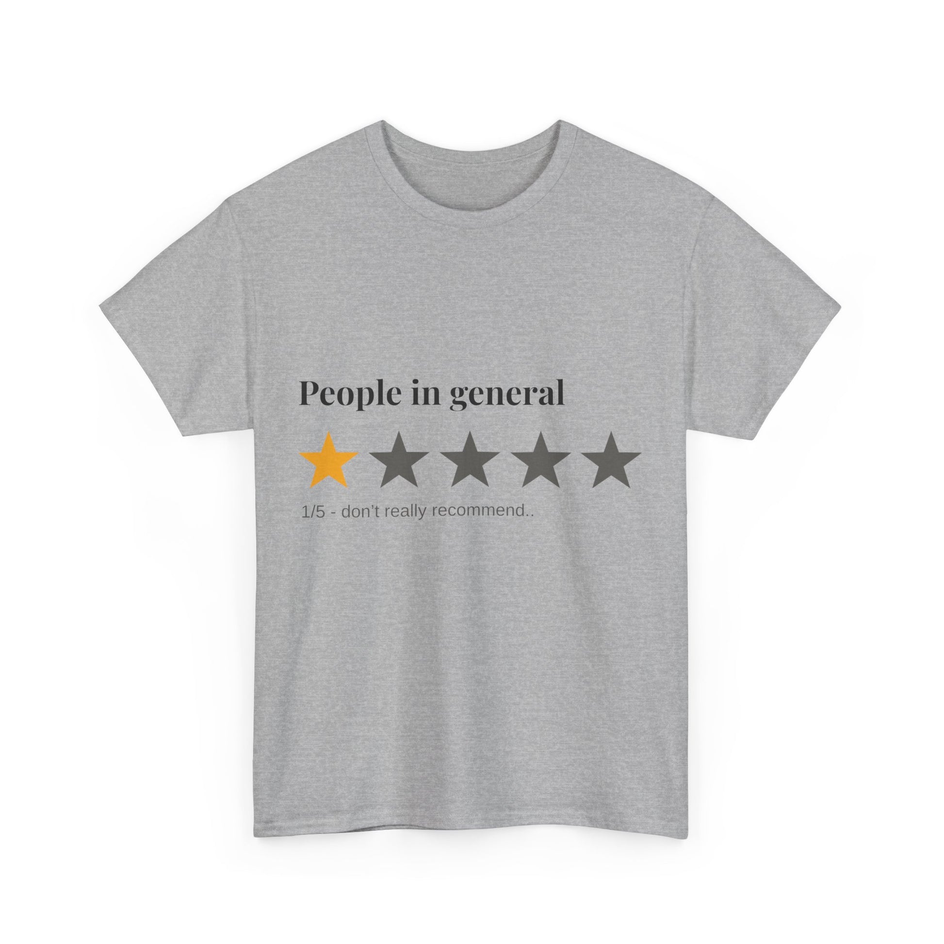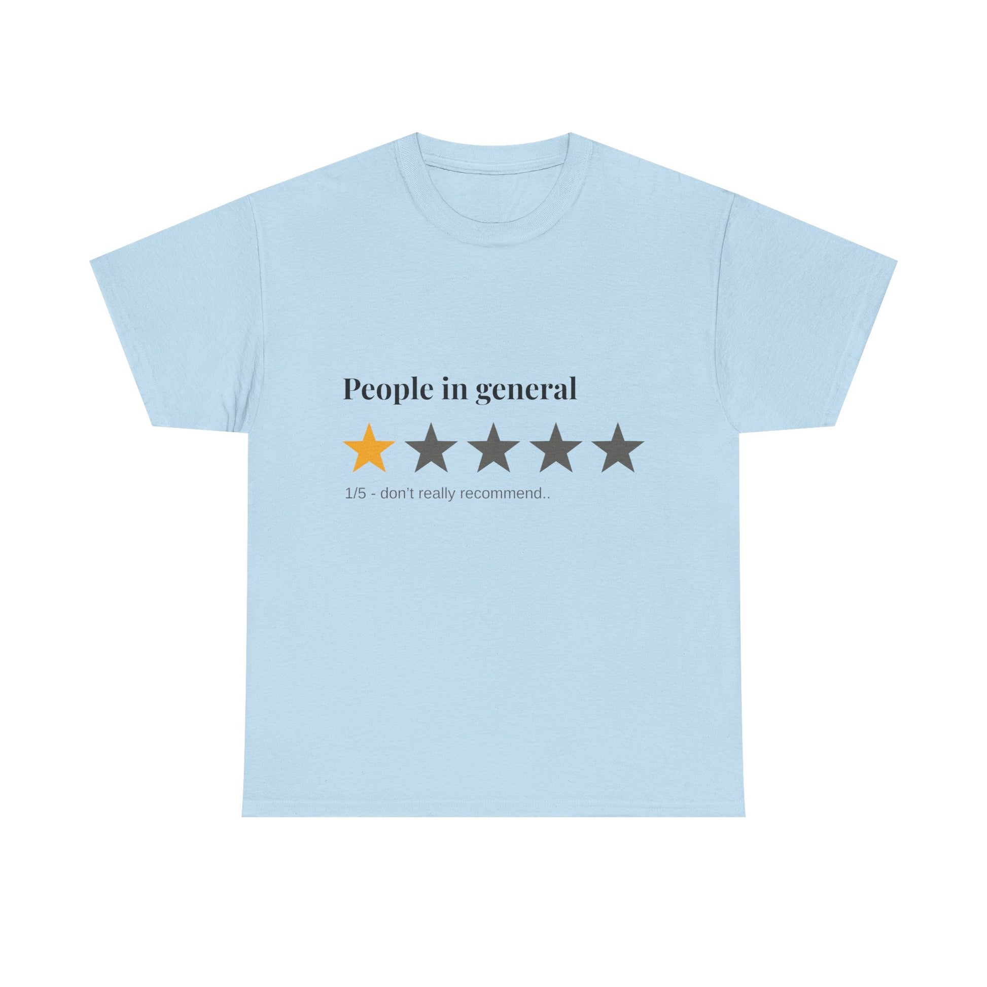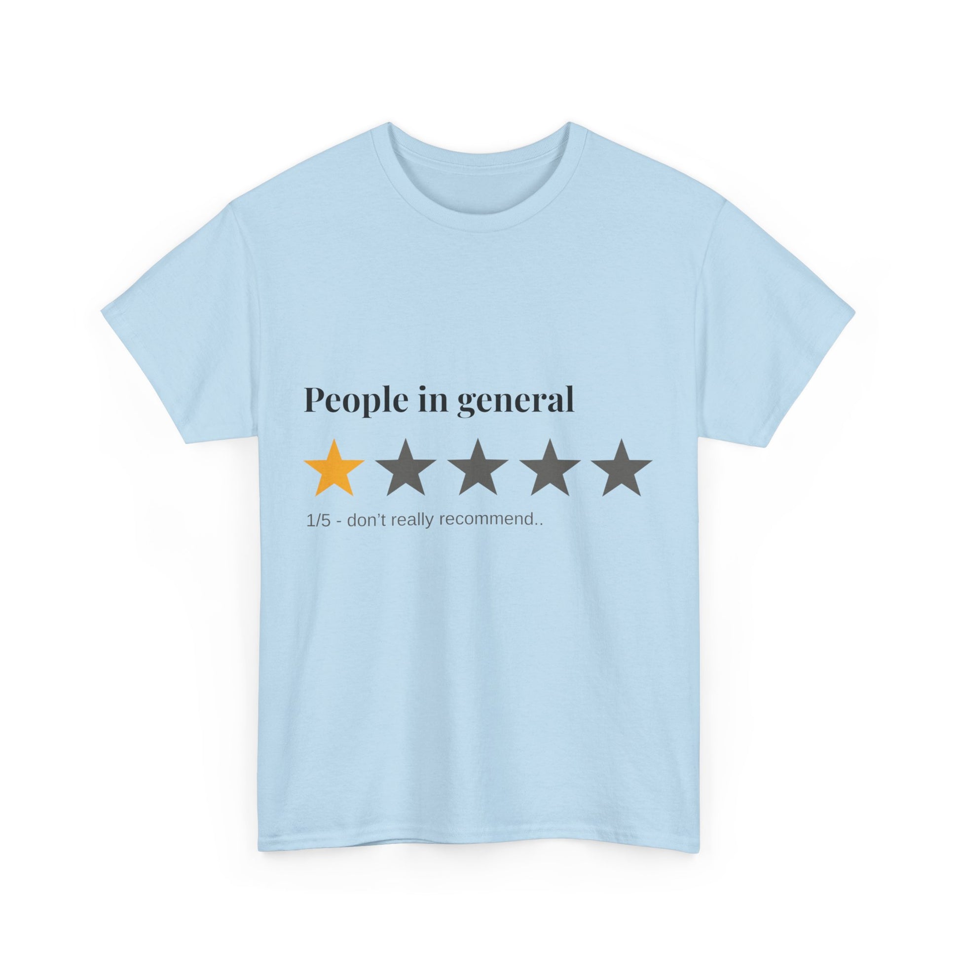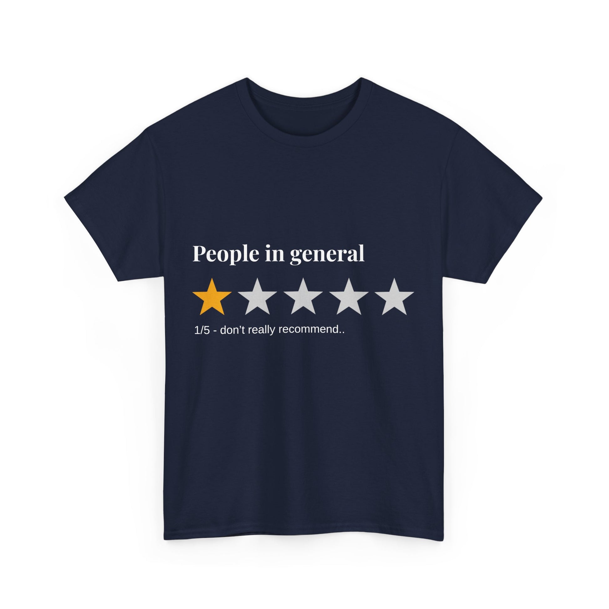 Show the world your honest review with our “People in General – 1/5 Stars” T-Shirt. This sarcastic meme tee uses the classic star-rating gag to perfectly sum up your feelings about humanity — with humor and irony. Ideal for introverts, pessimists, or anyone who loves dry, sarcastic humor.
